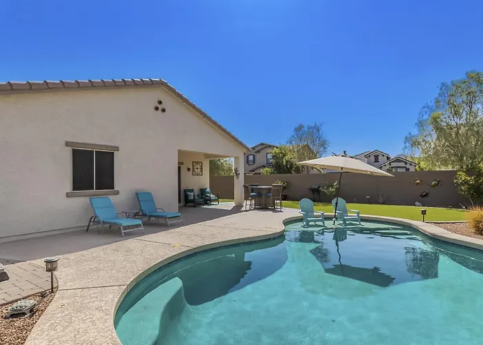 Golden Marigold Sanctuary Villa Buckeye is located 1.8 miles from Victory Course and offers guests to enjoy their evening on a terrace with a swimming pool.